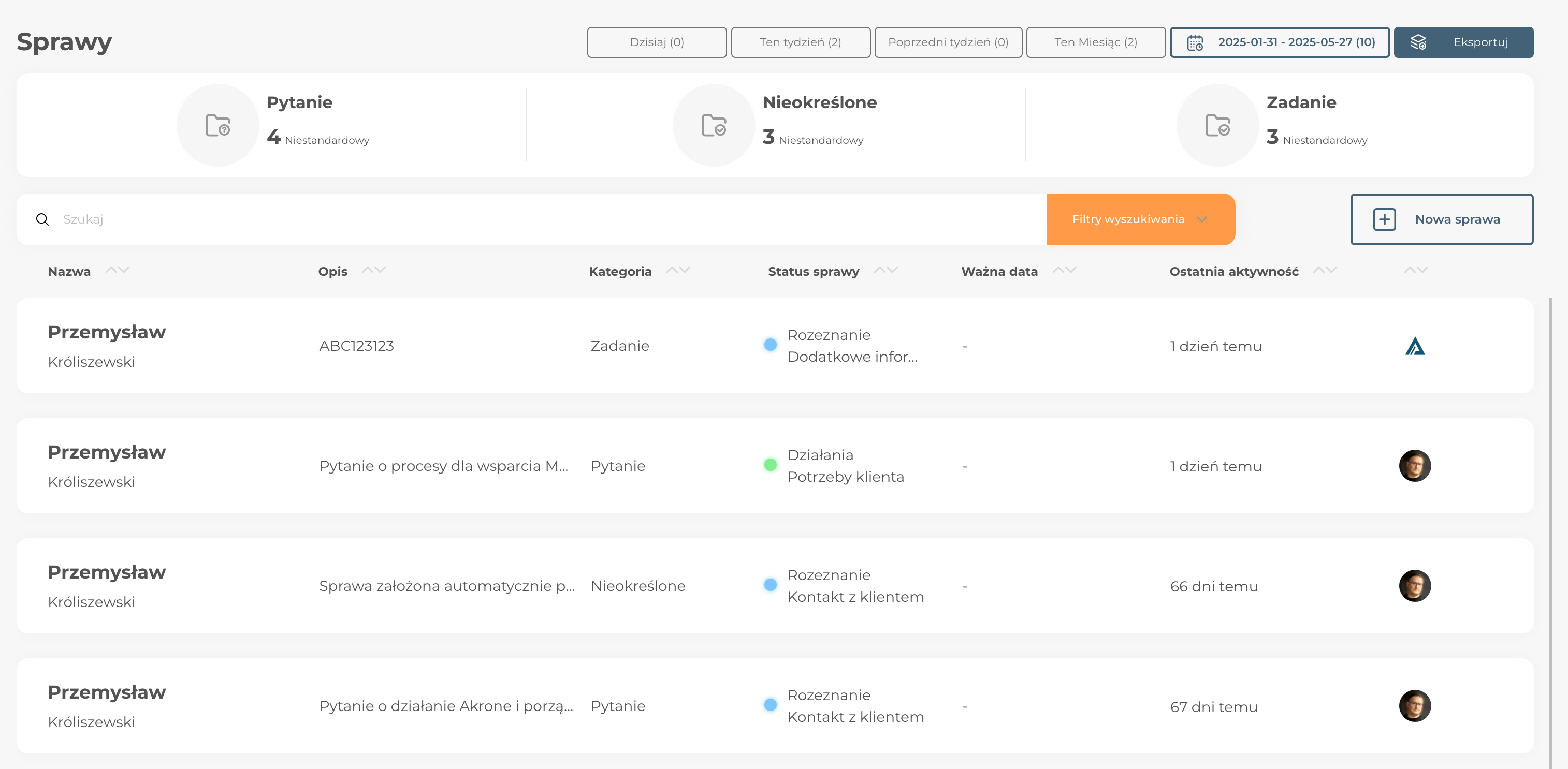- Możliwość eksportowania danych z listy spraw,